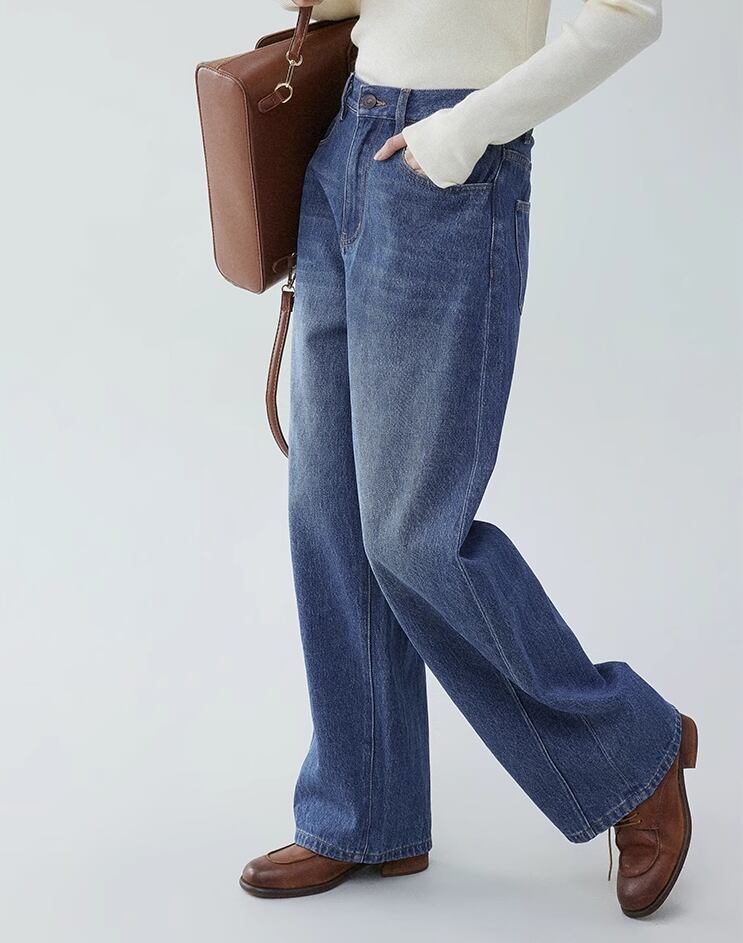 レディース ジーンズ ワイド コクーン Gパン デニム オールシーズン フルレングス ワイドレッグ ジップ ポケット ファスナー アメカジ ブルー 青 無地 S M L ブルーデニム 学校 大学 コンサート 外出 体型カバー 流行 トレンド 普段使い 日常使い 楽ちん 華奢見え 細見え 着痩せ 効果 定番 着回し 合わせやすい コーディネートしやすい 韓国 履きやすい ベーシック シンプル カジュアル ルーズ クール ボーイッシュ ラフ 学生 10代 20代 30代 40代 休日 通学用 デート お出かけ