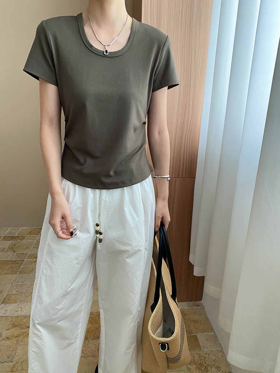 ベーシック Uネック 半袖 Tシャツ 春 夏 秋 冬 普通丈トップス 裾イン 襟なし カラバリあり ブラック 黒 灰色 ライトグレー ホワイト 白 カーキグリーン グリーン ライトブルー 水色 無地 サイズ豊富 S M L XL LL オフィス 学校 大学 職場 外遊び 外出 1枚で決まる 重ね着しやすい スニーカーコーデ 普段使い 日常使い 楽ちん 定番 着回し デイリー 合わせやすい シンプル ナチュラル カジュアル 清楚 ラフ 爽やか 10代 20代 30代 40代 50代 60代 休日 お出かけ