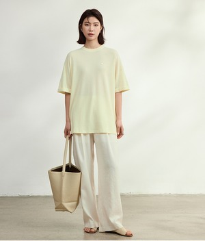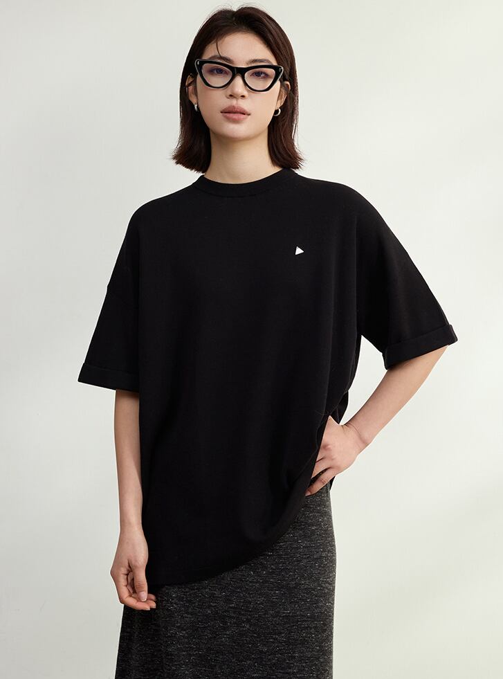 レディース Tシャツ きれいめ 夏 裾長め お尻カバー 半袖 クルーネック 丸首 ワンポイント ブラック 黒 イエロー 黄色 無地 ゆったり フリーサイズ 綿 学校 大学 外出 体型カバー 普段使い 日常使い 細見え 着痩せ 効果 高見え 定番 着回し デイリー 合わせやすい コーディネートしやすい ベーシック シンプル カジュアル ルーズ クール メンズライク スポーティ ボーイッシュ ラフ 爽やか ぽっちゃり 10代 20代 30代 40代 50代 60代 女子会 休日 通勤用 通学用 デート お出か