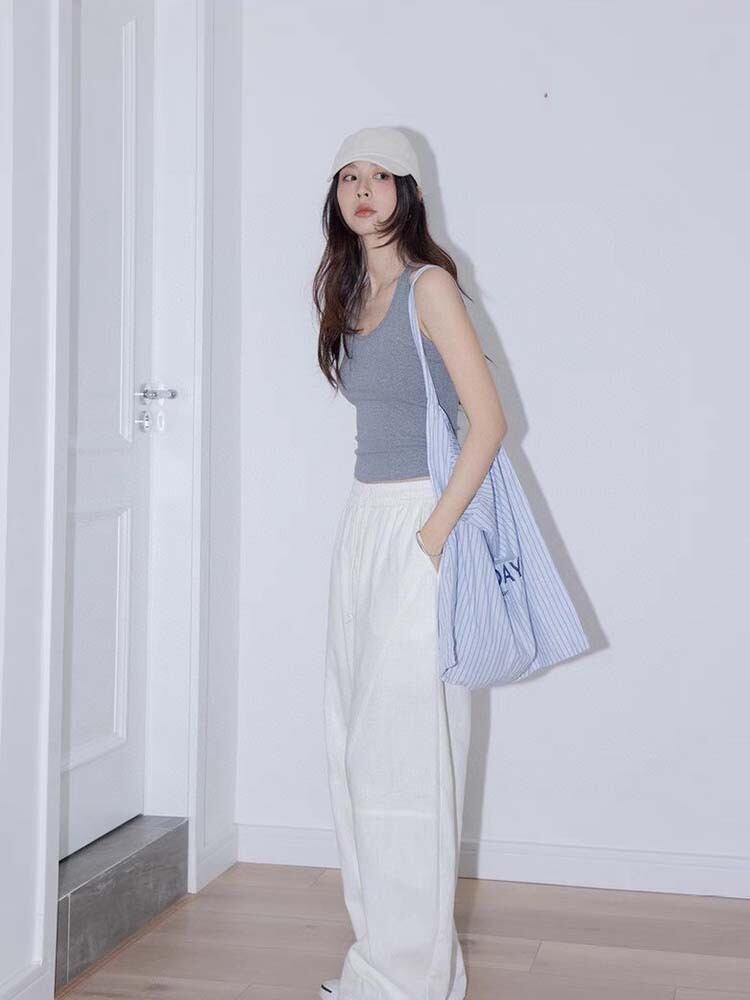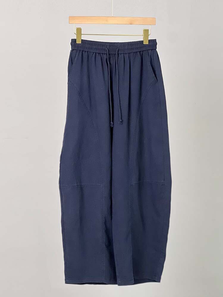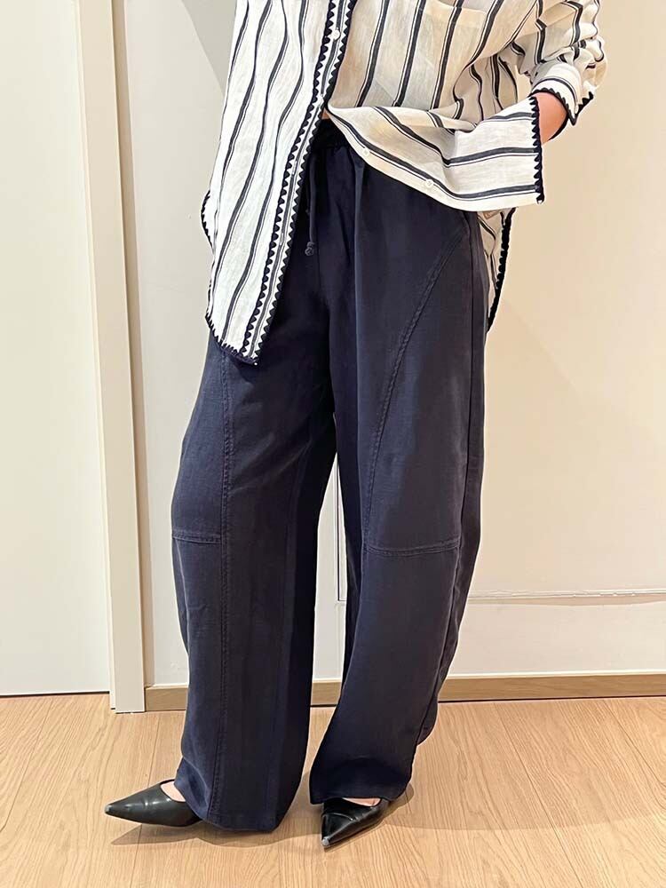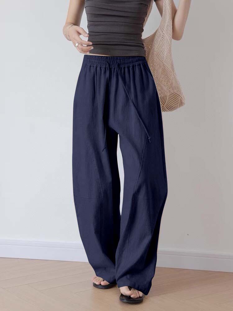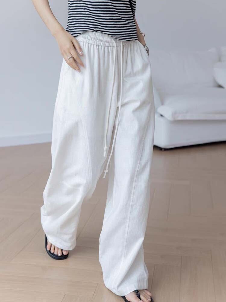 ワイドレッグ ハイウエスト ルーズ パンツ イージーパンツ サルエルパンツ ワイド フルレングス バルーン 切り替えデザイン ダボダボ 立体的 ホワイト 白 ネイビー 藍色 無地 S M L リネン風 学校 大学 外出 体型カバー 流行 トレンド 普段使い 日常使い 楽ちん 華奢見え 若見え 着回し 韓国 ベーシック シンプル ナチュラル カジュアル ルーズ ボーイッシュ ラフ ママ 学生 10代 20代 30代 40代 幼稚園ママ お迎えコーデ 休日 通学用 デート お出かけ INSスタイル インスタ映