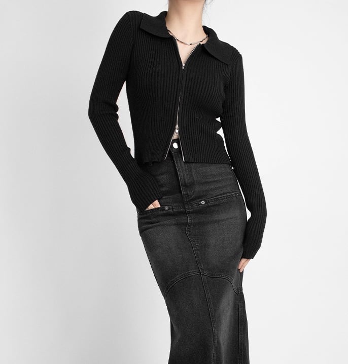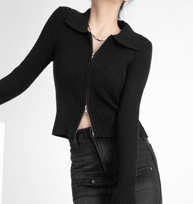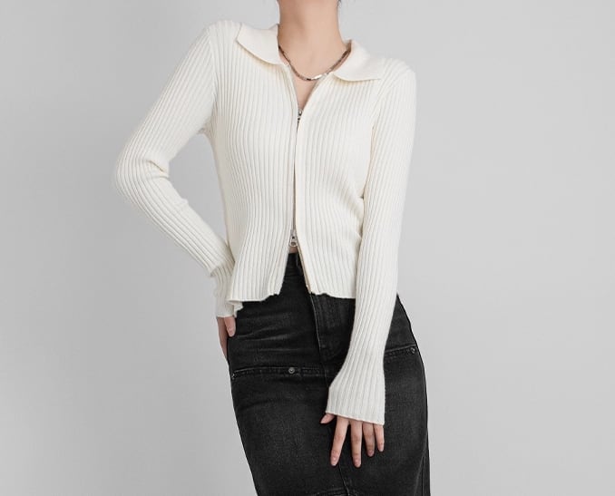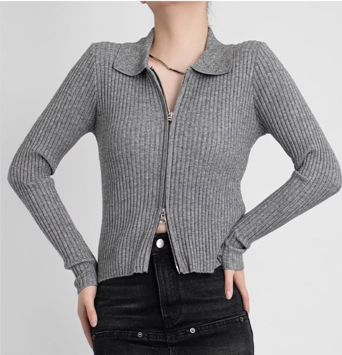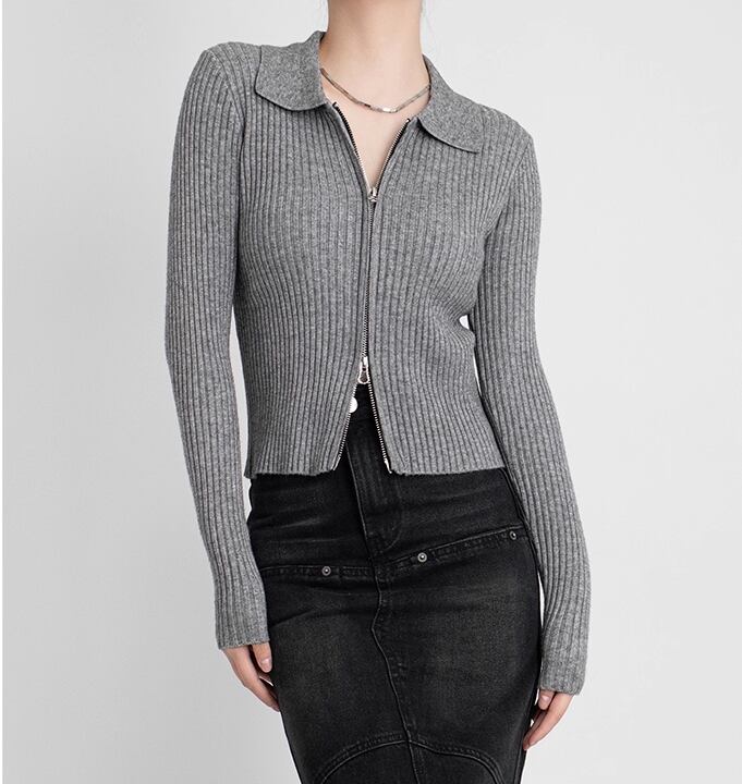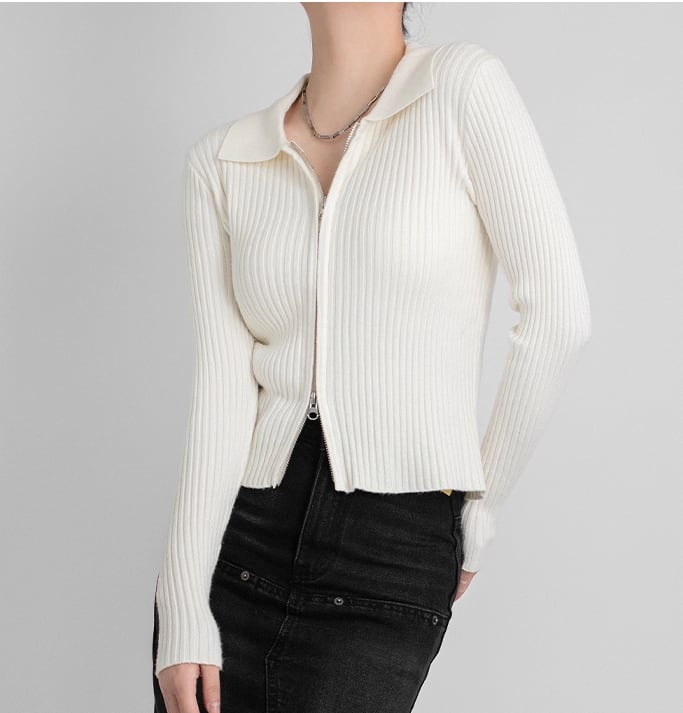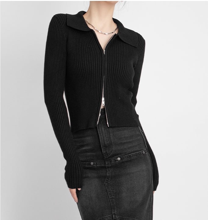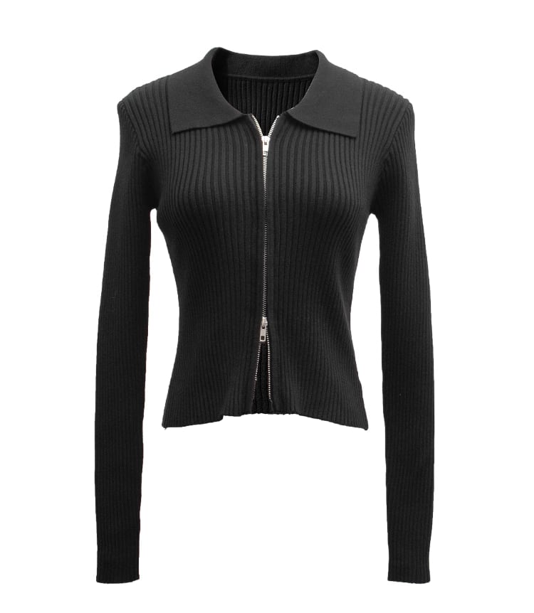 Wジッパー ニット リブ カーディガン ジップアップ 普通丈トップス 長袖 襟付き タイト 編み込み カラバリあり ブラック 黒 グレー 灰色 ホワイト 白 無地 フリーサイズ オフィス 学校 大学 職場 外出 仕事 1枚で決まる 普段使い 日常使い 華奢見え 細見え 若見え 着回し デイリー 合わせやすい スタイルアップ ベーシック シンプル ナチュラル カジュアル セクシー マニッシュ モダン クール おしゃれ こなれ感 ママ 学生 10代 20代 30代 40代 休日 通勤用 通学用 お出かけ