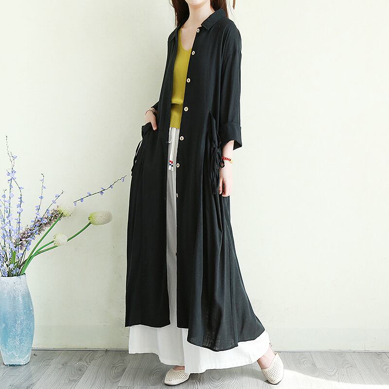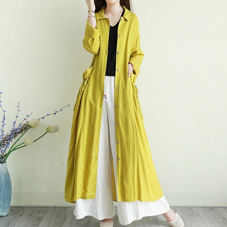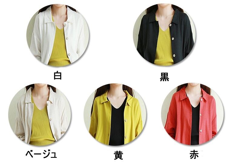 ロングシャツ レディース カーディガン 日焼け防止 ルーズ フリーサイズ 白 黒 ベージュ 黄 赤 上着 アウター 薄い リネン 春 夏 麻 長袖 上品 体系カバー OL 無地 ロング 襟付き 大人 普段使い 20代 30代 楽ちん ゆったり