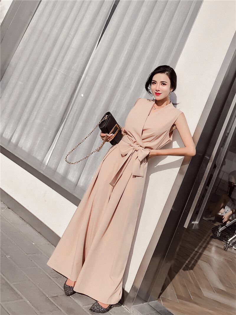オールインワン ノースリーブパンツドレス 5色レディース マキシ丈 ロング パンツ ワンピース セットアップ風 オールインワン セレブ クール パンツスタイル