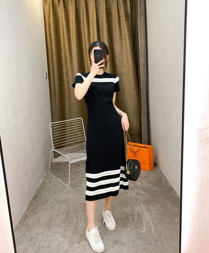 セットアップ 半袖 春夏 カジュアル ロング ニット ワンピ タイトワンピース ニット 膝丈 ひざ丈 膝下 ミモレ ミモレ丈 7分丈 ミディアム丈 ミドル丈 レギュラー丈 Uネック ラウンドネック 襟なし スリム タイト 細身 ウエストゴム 黒 ブラック 大人カラー S M L 小さいサイズ 大きいサイズ ジャスト かわいい 大人可愛い きれいめ シンプル カジュアル 大人 上品 おしゃれ ナチュラル かっこいい エキゾチック リラックス ボーダー 韓国 韓国系 オルチャン 韓国ファッション コーデ