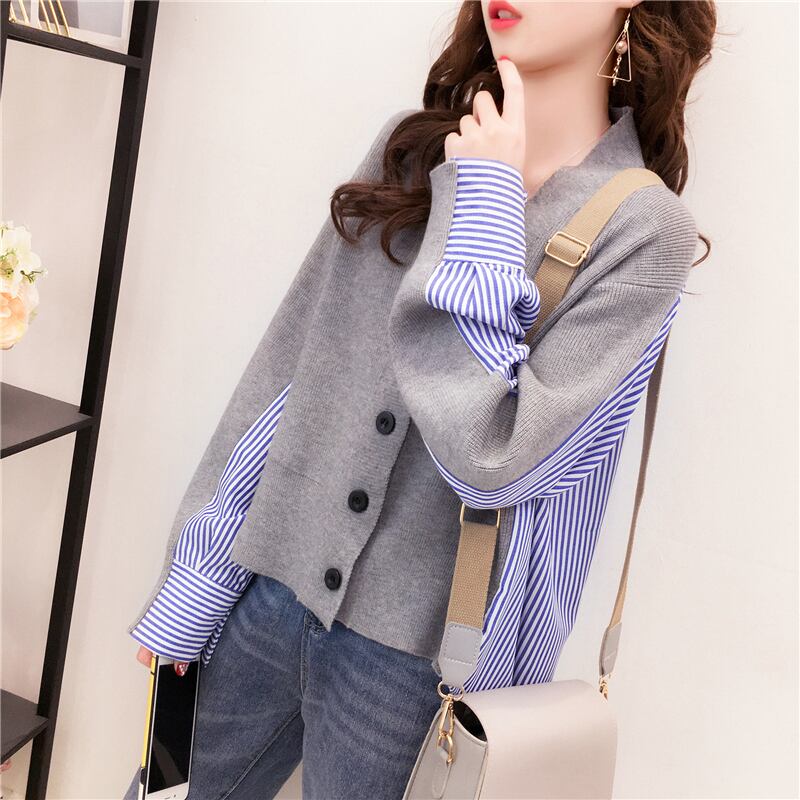 2色 アウター カーディガン レディース 秋冬 個性的 軽い ショート丈 長袖 ボリューム袖 ドルマンスリーブ Vネック 襟なし BIGシルエット フレア セミフレア 切り替えデザイン ドッキング 切り替えデザイン ドッキング 前開き 灰色 グレー ネイビー 大人カラー 秋カラー M L XL 2XL 3XL 大きいサイズ 大きい 大きめ ビッグサイズ ゆったり ゆる かわいい 大人可愛い きれいめ シンプル カジュアル 大人 上品 おしゃれ かっこいい アジアン 無地 ストライプ 韓国 韓国系