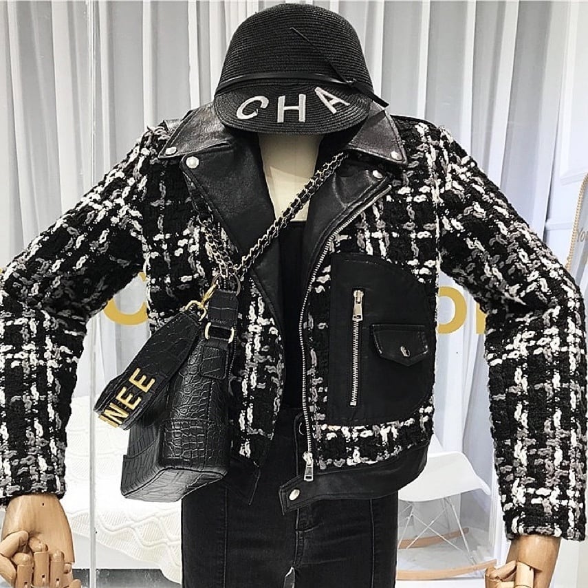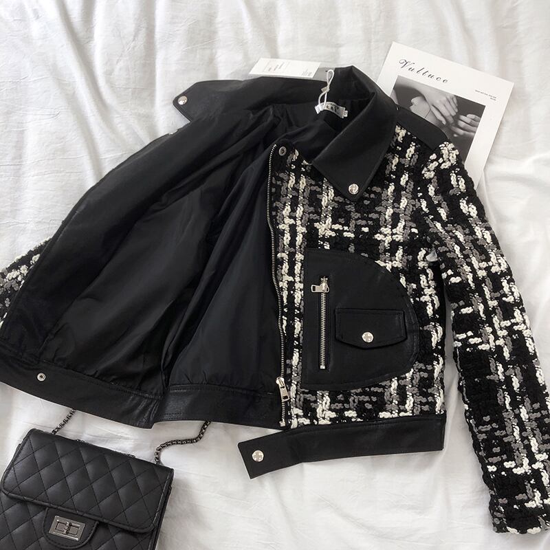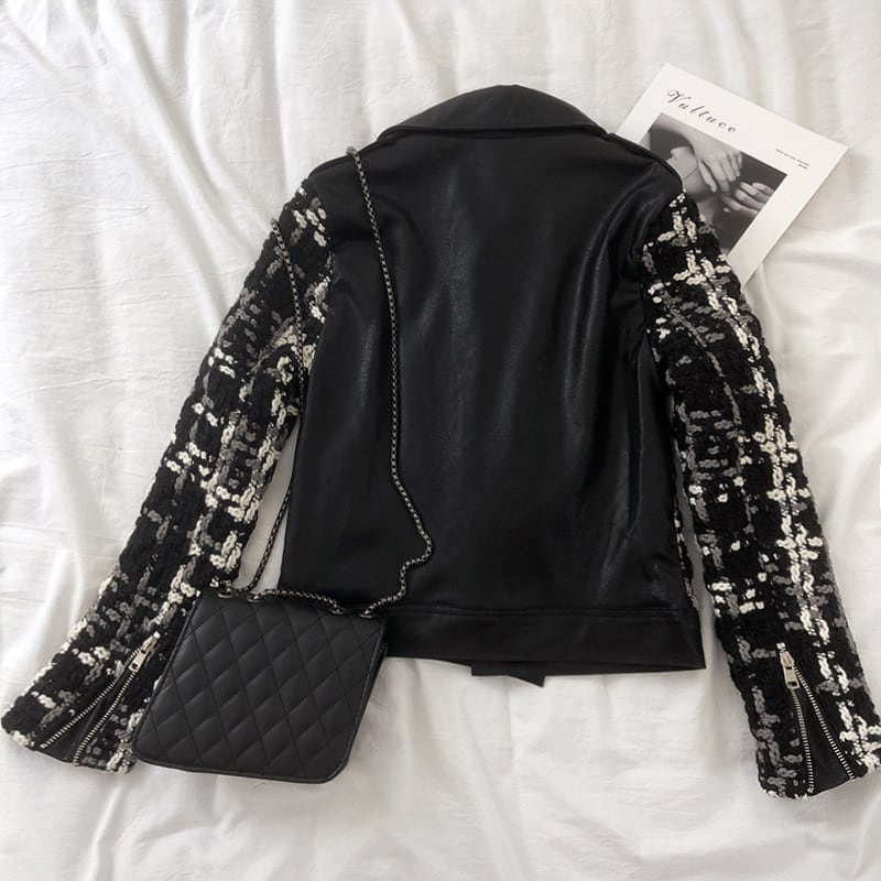 ジャケット レディース アウター ジャケット 袖あり 長袖 襟付き ファスナー ポケット 綿 PU カジュアル おしゃれ お洒落 かっこいい ボーイッシュ 韓国 韓国系 オルチャン 暖かい 防寒 M L XL 2XL 3XL 黒 ブラック