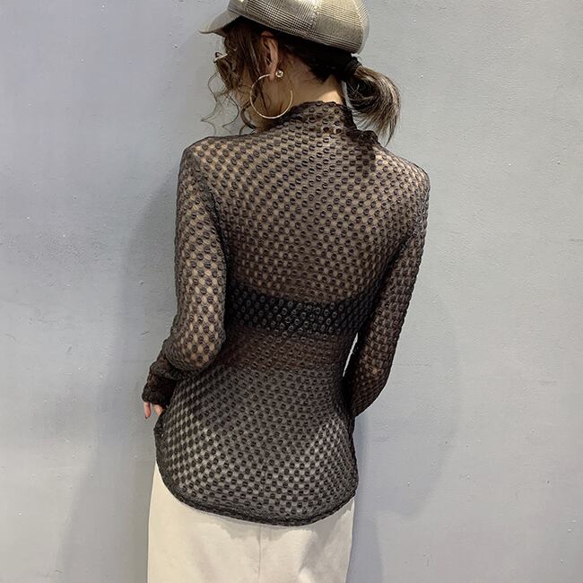 5色 トップス Tシャツ シャツ プルオーバー レディース 春夏 カジュアル ゆったり ゆったり 長袖 萌袖 ハイネック 襟なし スリム タイト 細身 透け感 シースルー 白 ホワイト 黒 ブラック 灰色 グレー ベージュ ピンク パステルカラー くすみカラー 大人カラー 春カラー 秋カラー S M L かわいい 大人可愛い きれいめ シンプル カジュアル 大人 上品 おしゃれ ナチュラル かっこいい レトロ アジアン エスニック エキゾチック リラックス フェミニン 無地 ドット柄 水玉 韓国 韓国系