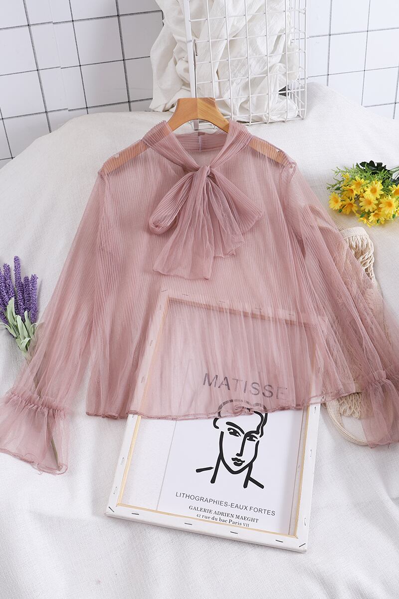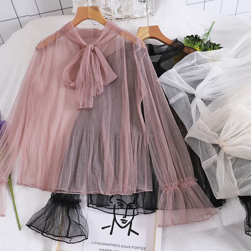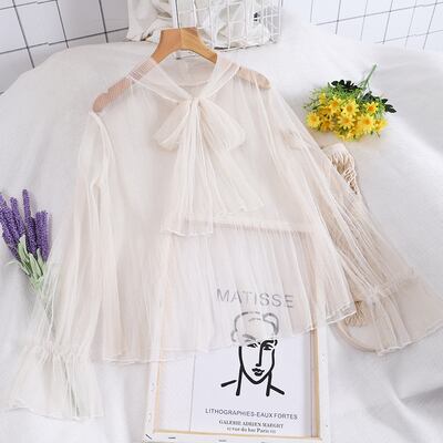 4色 トップス シャツ ブラウス カットソー プルオーバー レディース 春夏 かわいい ゆったり ゆったり 長袖 萌袖 ベルスリーブ Uネック ラウンドネック タイ付き フレア セミフレア レース チュール シフォン 透け感 シースルー プルオーバー 白 ホワイト 黒 ブラック ベージュ ピンク パステルカラー くすみカラー 大人カラー 春カラー 秋カラー ワンサイズ ゆったり かわいい 大人可愛い きれいめ シンプル カジュアル 大人 上品 おしゃれ ナチュラル エキゾチック リラックス フェミニン