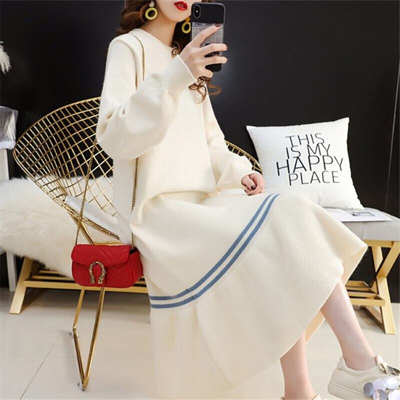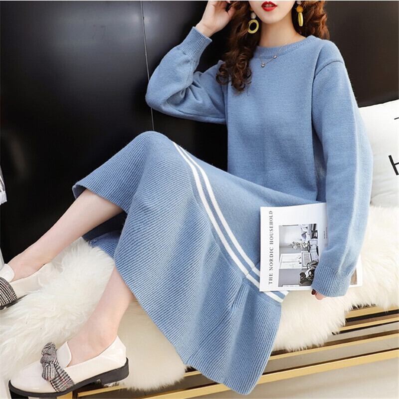 3色 ワンピース 長袖 春 秋 冬 きれいめ カジュアル かわいい ロング aライン ルームウェア Aライン フレア ティアード ニット ワンピ ワンピドレス ロング ロング丈 萌袖 Uネック ラウンドネック 切り替えデザイン 裾ワイド プリーツ 白 ホワイト 青 ブルー ピンク S M L XL 2XL かわいい 大人可愛い きれいめ シンプル カジュアル 大人 上品 おしゃれ ナチュラル かっこいい レトロ 無地 ボーダー 韓国 韓国系 オルチャン 韓国ファッション 体型カバー 美脚 脚長 定番