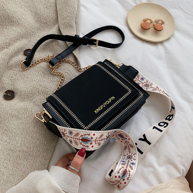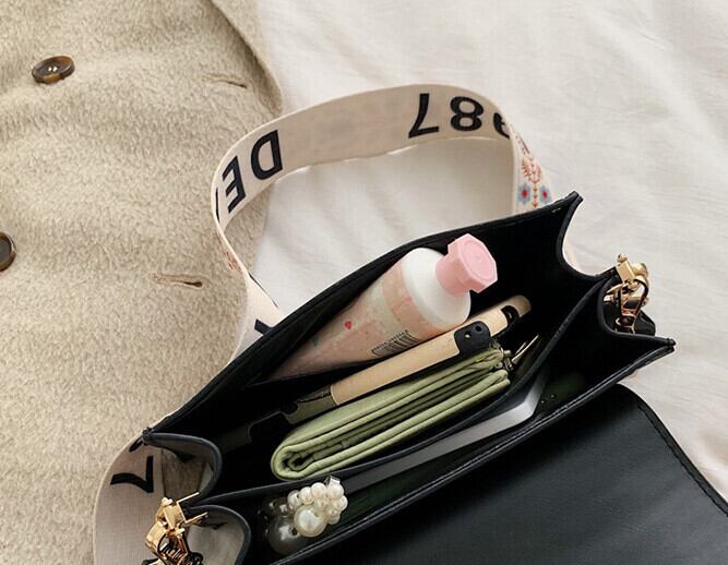 肩掛け、斜め掛けができ、いつもの服装に合わせるだけで、トレンド感が増します。