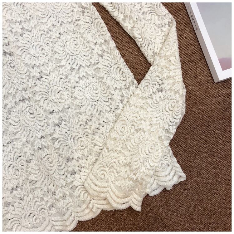 もちろん一枚でトップスとしても主役になるこちらの商品はレース×シースルー素材が女性らしくどこかエレガントな雰囲気の漂う一枚。