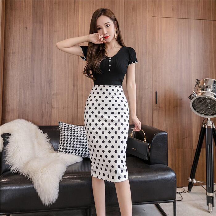 2色 スカート 春夏 かわいい レディース タイトスカート 膝丈 ひざ丈 膝上 膝下 ミモレ丈 ドット柄 水玉 スリット ハイウエスト バックスリット 白 ホワイト 黒 ブラック 大人カラー モノトーン 春カラー 秋カラー かわいい 大人可愛い きれいめ シンプル カジュアル 大人 上品 おしゃれ お洒落 かっこいい レトロ クラシカル エレガント S M L XL ジャスト こなれ感 ラフ ラブリー キュート ガーリー ルーズ 個性的 クール モード系 セクシー モダン 主役級 存在感 とろみ感