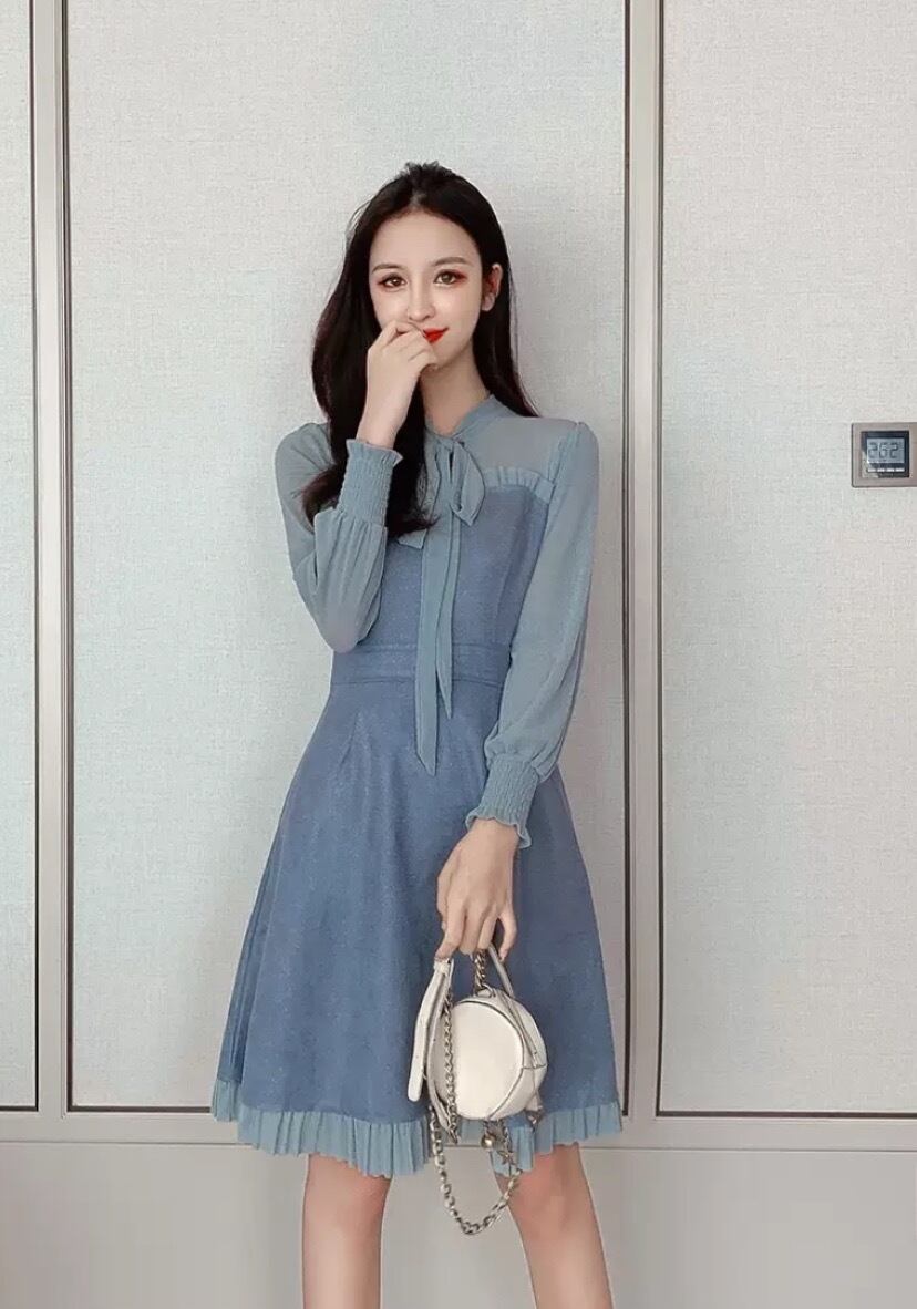 2色 ワンピース 長袖 春 秋 冬 かわいい aライン フレア ミニ丈 膝上 萌袖 スリム タイト 細身 ストレート Iライン スマート シフォン フリル リボン 透け感 青 ブルー ベージュ S M L XL 2XL ジャスト かわいい 大人可愛い きれいめ 大人 上品 おしゃれ 無地 コーデ スタイル モテ こなれ感 ラフ ラブリー キュート ガーリー セクシー エレガント 主役級 存在感 とろみ感 抜け感 OL 学生 デート 女子会 お泊まり