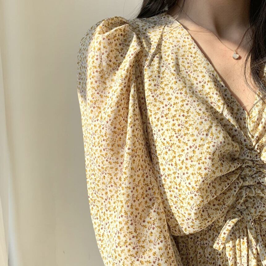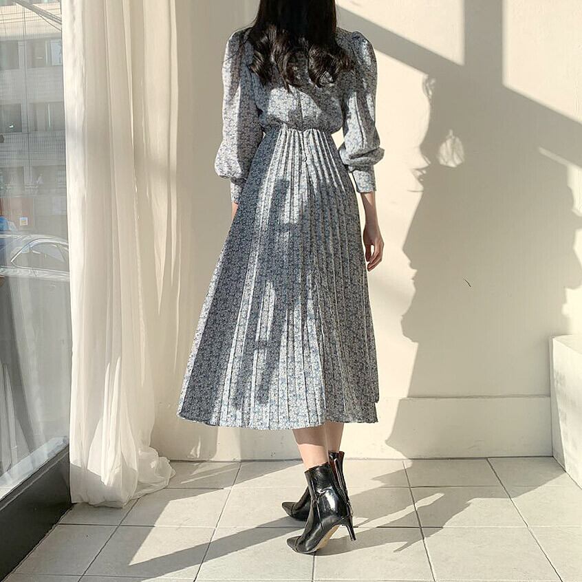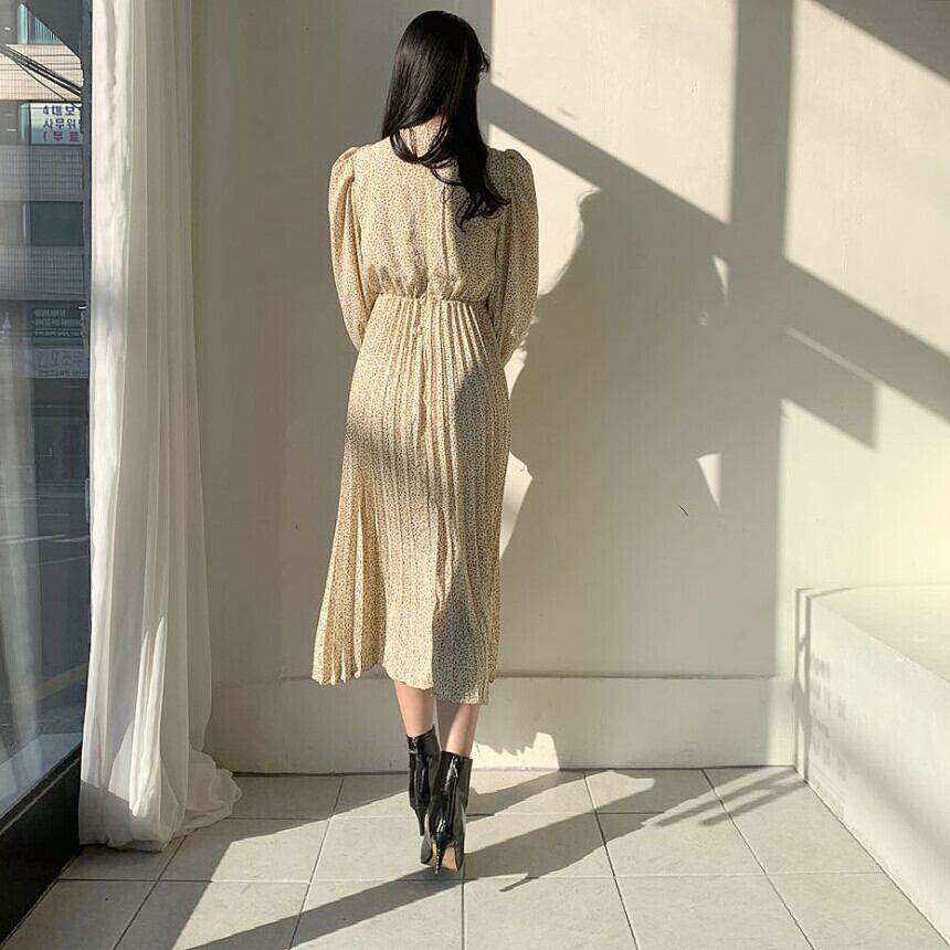 シックでエレガントな優しい花柄のオルチャン系レトロワンピース♪