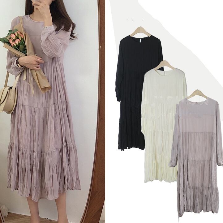 3色 ワンピース 長袖 春夏 カジュアル ティアード ミモレ丈 ロング丈 袖コンシャス ラウンドネック 襟なし フレア Aライン シフォン ファスナー 色展開 ブラック グレー カーキ S M L XL ゆったり かわいい 大人可愛い きれいめ シンプル カジュアル 大人 おしゃれ ナチュラル リラックス 無地 コーデ 楽ちん 着回し モテ 体型カバー 普段使い こなれ感 ラフ ラブリー キュート ガーリー ルーズ 主役級 OL 学生 デート 女子会 パーティー イベント 旅行 ショッピング 女性用