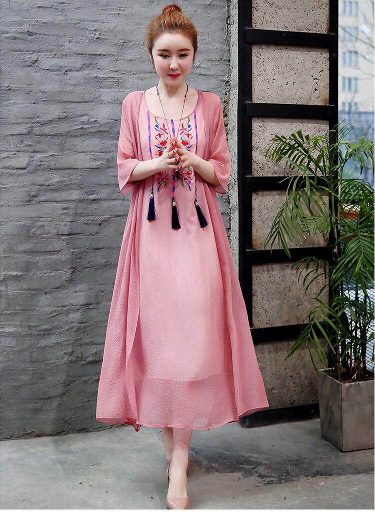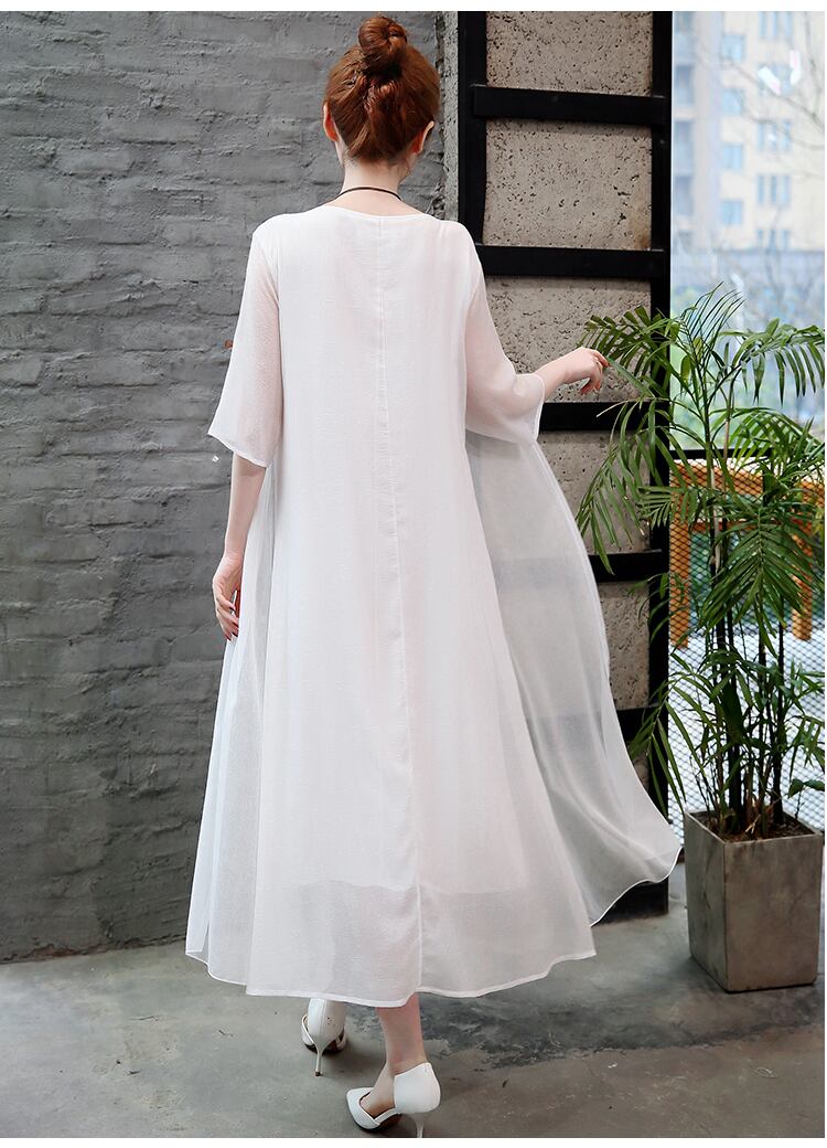 4色 ワンピース 半袖 春夏 カジュアル フレアワンピース ミモレ丈 ロング丈 五分袖 フレアスリーブ ラウンドネック フレア Aライン 刺繍 シフォン 透け感 色展開 ホワイト ブルー グリーン ピンク パステルカラー M L XL 2XL ゆったり かわいい カジュアル おしゃれ ナチュラル エスニック リラックス 花柄 スタイル 楽ちん 体型カバー こなれ感 ラフ ラブリー キュート ガーリー エレガント 主役級 OL 学生 デート 女子会 イベント ショッピング 女性用 ママ 高校生 中学生