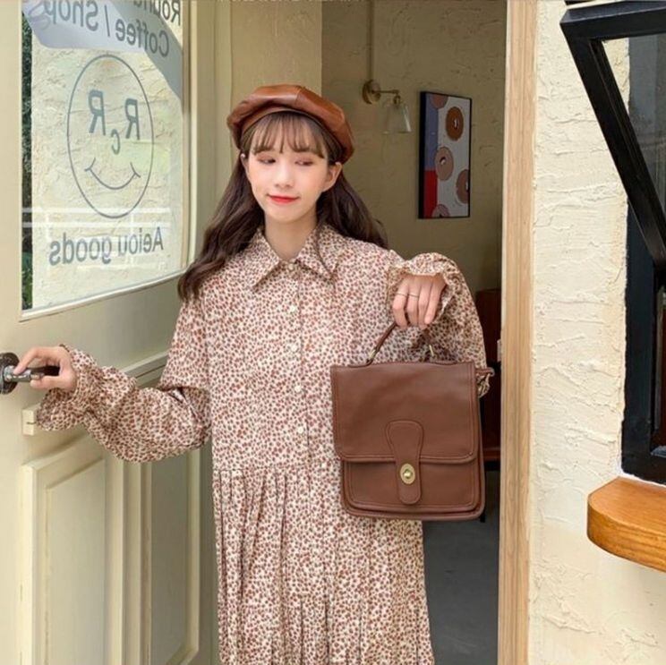 2色 ワンピース 長袖 春 カジュアル シャツワンピース ひざ丈 膝下 フリル袖 萌袖 襟付き ストレート Iライン プリーツ フリル 色展開 ブラック アプリコット フリーサイズ かわいい 大人可愛い きれいめ シンプル カジュアル 大人 上品 おしゃれ ナチュラル レトロ 小花柄 コーデ スタイル 楽ちん 着回し 体型カバー 脚長 普段使い こなれ感 ラブリー キュート ガーリー ルーズ 主役級 フォーマル OL 学生 通学 デート お出かけ 女子会 休日 リゾート 旅行 レストラン ショッピング