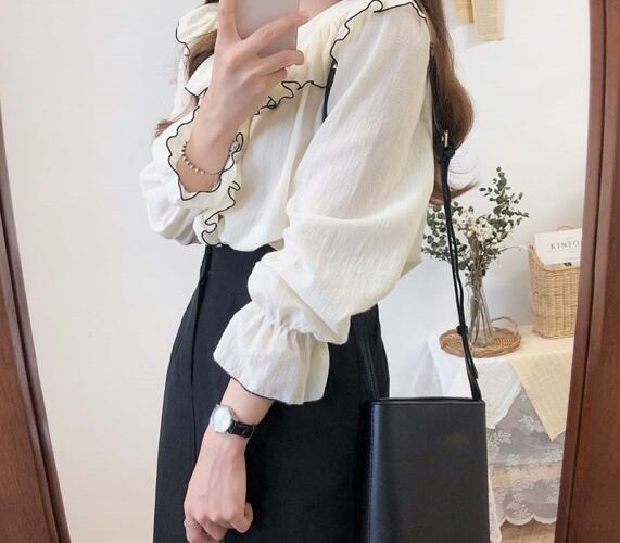 2色 トップス ブラウス レディース 春夏 かわいい 長袖 フリル袖 Vネック 襟付き フリル 前開き 色展開 ホワイト オレンジ ワンサイズ フリーサイズ かわいい 大人可愛い きれいめ カジュアル おしゃれ 無地 韓国ファッション コーデ 着回し モテ 普段使い 10代 20代 30代 こなれ感 ラブリー キュート ガーリー エレガント 主役級 フォーマル オフィス OL 通勤 学生 通学 デート お出かけ 女子会 パーティー イベント 旅行 レストラン ショッピング 映画館 謝恩会 二次会 同窓会