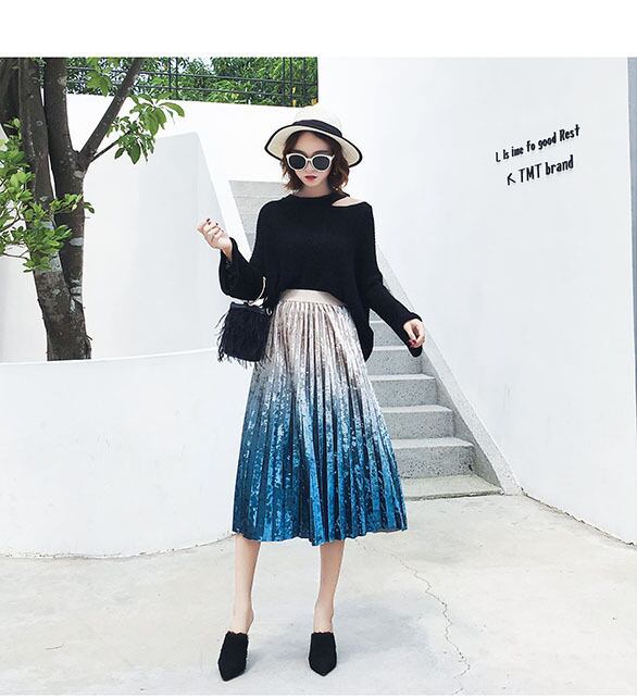 4色 スカート 春夏 カジュアル プリーツスカート ひざ丈 膝下 グラデーション ウエスト ゴム 伸縮性 パープル ブラウン ピンク ネイビー メタリック かわいい 大人可愛い きれいめ シンプル カジュアル おしゃれ フリーサイズ ゆったり ラフ ラブリー キュート ガーリー ルーズ 個性的 主役級 アジアン 女性用 高校生 中学生 OL 学生 女の子 10代 20代 30代 イベント オールシーズン 誕生日 二次会 着回し 普段使い ファッション コーデ 楽ちん インスタ映え 通学 デート お出かけ
