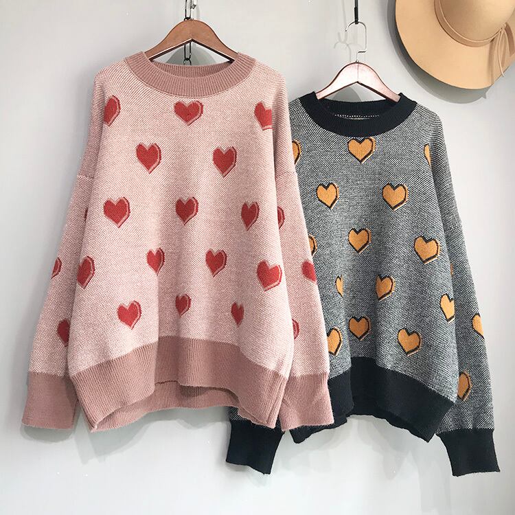 ニットセーター レディース トップス セーター ニット インナー 通勤 通学 女子会 お出かけ デート デイリー ショッピング 買い物 ラフ 可愛い 長袖 シンプル 伸縮性 スリム ゆったり 着痩せ 大きいサイズ ハート ファッション カジュアル ハート柄 春 秋 冬 10代 20代 上質 原宿 グレー 灰色 ピンク ベージュ パープル 紫 ラベンダー ブラック 黒 ラブ オレンジ レッド 赤 ホワイト 白