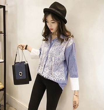 ストライプ×花柄レースが特徴のレディースシャツ。