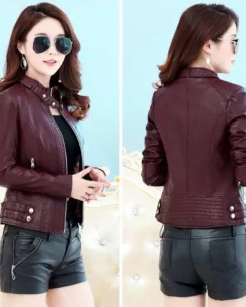 2色 アウター ジャケット レディース 秋冬 春 かわいい きれいめ 個性的 暖かい 軽い 革ジャン フェイクレザー ショート丈 七分袖 長袖 Vネック ハイネック タートルネック スリム タイト 細身 ストレート ファスナー ポケット 前開き 黒 ブラック ワインレッド M L XL 2XL 3XL 4XL きれいめ シンプル カジュアル 大人 上品 おしゃれ かっこいい レトロ 無地 韓国 韓国系 オルチャン 体型カバー 定番 普段使い インスタ映え こなれ感 メンズライク マニッシュ ボーイッシュ