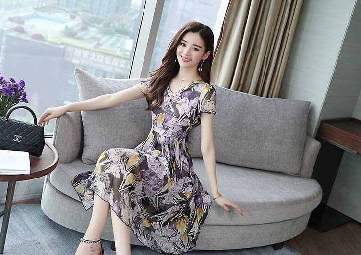 3色 レトロ風 ワンピース 半袖 春 夏 秋 きれいめ カジュアル かわいい ロング フォーマル aライン シャツワンピース Aライン フレア ティアード ワンピドレス 膝丈 ひざ丈 ミディアム丈 ミドル丈 五分袖 Vネック フレア セミフレア スリム タイト 細身 シフォン ウエストマーク 青 ブルー 紫 パープル 黄色 イエロー M L XL 2XL 3XL かわいい 大人可愛い きれいめ シンプル カジュアル 大人 上品 おしゃれ ナチュラル かっこいい レトロ 柄 花柄 フラワー エレガント