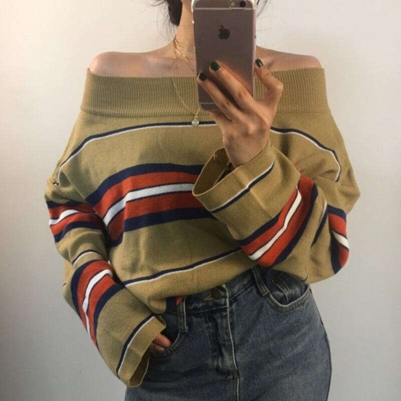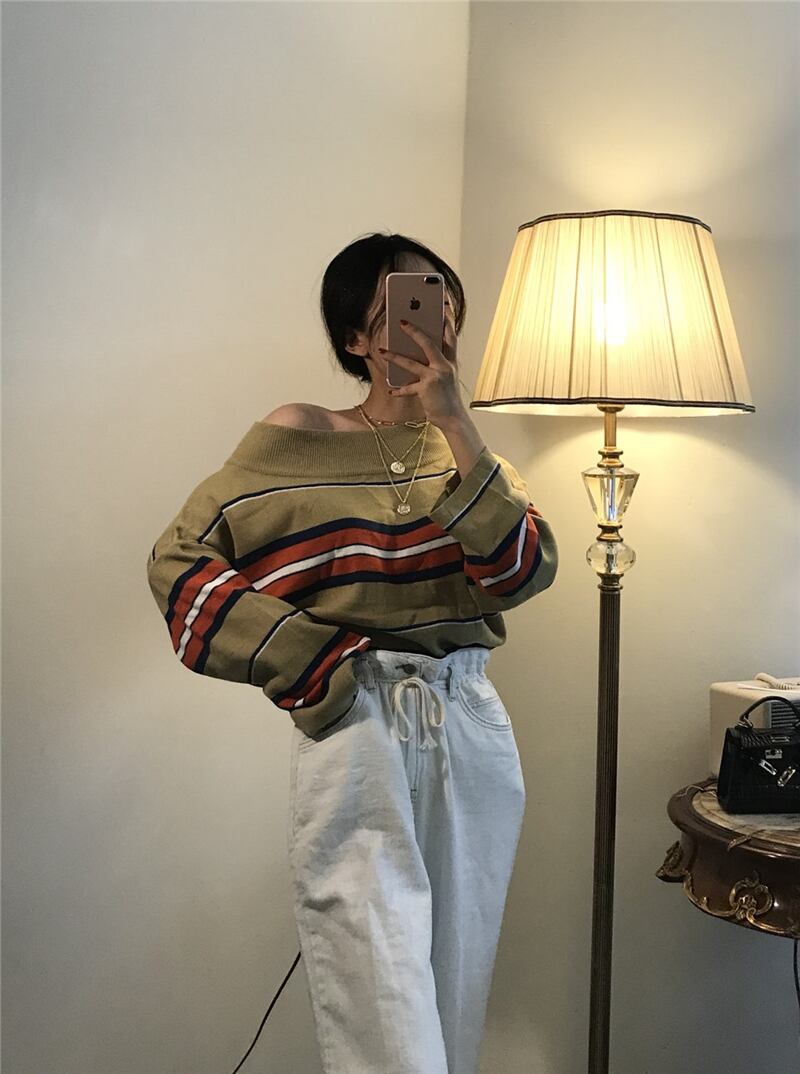 肩が大きく開いたセクシーでクールなレディースセーター。