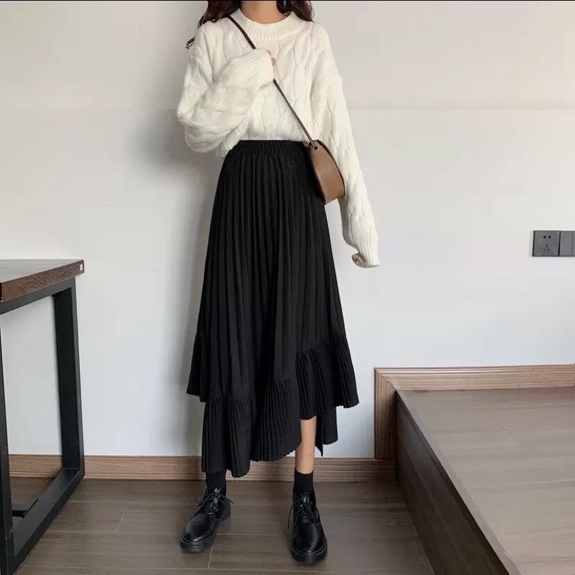細プリーツと裾切り替えプリーツの組み合わせがオシャレです!!切り替えのフレア部分が動くたびにふわりと揺れ体型カバー力も抜群!!
