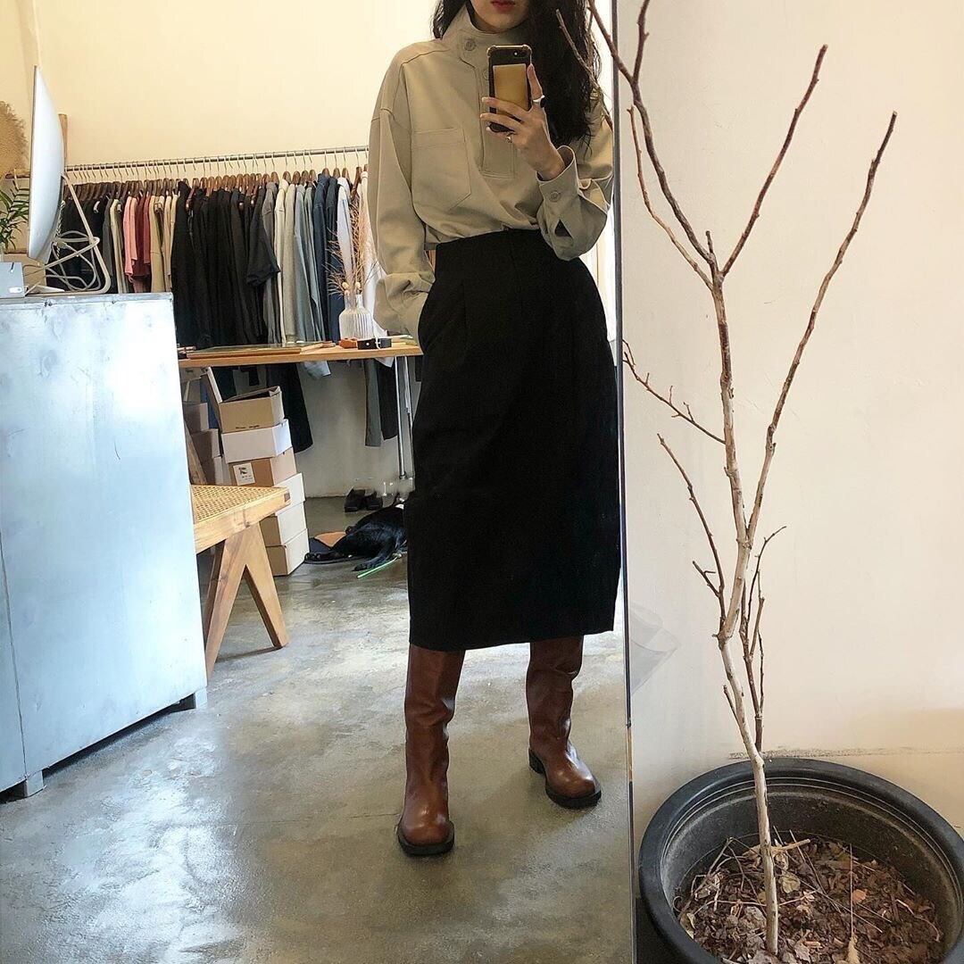 2色 トップス シャツ ブラウス 春 秋 かわいい きれいめ カジュアル ゆったり レギュラー丈 長袖 ハイネック タートルネック スタンドカラー ボトルネック ストレート スマート 裾イン ポケット シンプル 黒 ブラック ベージュ ワンサイズ かわいい 大人可愛い きれいめ シンプル カジュアル 大人 上品 おしゃれ ナチュラル かっこいい レトロ 無地 韓国 韓国系 オルチャン 韓国ファッション 体型カバー 普段使い インスタ映え こなれ感 ラフ メンズライク マニッシュ ボーイッシュ 個性的