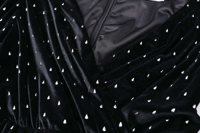 大胆なVネックがセクシーな印象を与えるショート丈のワンピース。