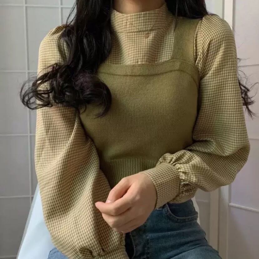 2色 トップス ブラウス レディース 秋冬 かわいい 長袖 長袖 パフスリーブ フリル袖 タートルネック ストレート ドッキング ブラック カーキ ワンサイズ ジャスト 大人可愛い カジュアル おしゃれ チェック柄 コーデ スタイル 楽ちん モテ 重ね着 10代 20代 30代 こなれ感 ラフ ラブリー キュート ガーリー 個性的 抜け感 オフィス OL 通勤 学生 通学 デート お出かけ 女子会 お泊まり 旅行 レストラン ショッピング 映画館 レディース 女性用 ママ 高校生 中学生 OL 学生