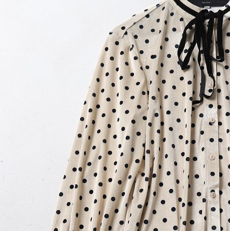 ドット柄 トップス シャツ ブラウス レディース 冬 春 秋 かわいい カジュアル 長袖 襟なし ノーカラー 裾イン リボン 白 ホワイト モノトーン S M L XL 小さいサイズ 大きいサイズ かわいい 大人可愛い きれいめ シンプル カジュアル おしゃれ レトロ 水玉 着回し 即納 10代 20代 30代 キュート ガーリー エレガント 存在感 ビジネス OL 通勤 学生 通学 デート お出かけ 女子会 旅行 レストラン ショッピング 映画館 誕生日 謝恩会 二次会 ベルベット