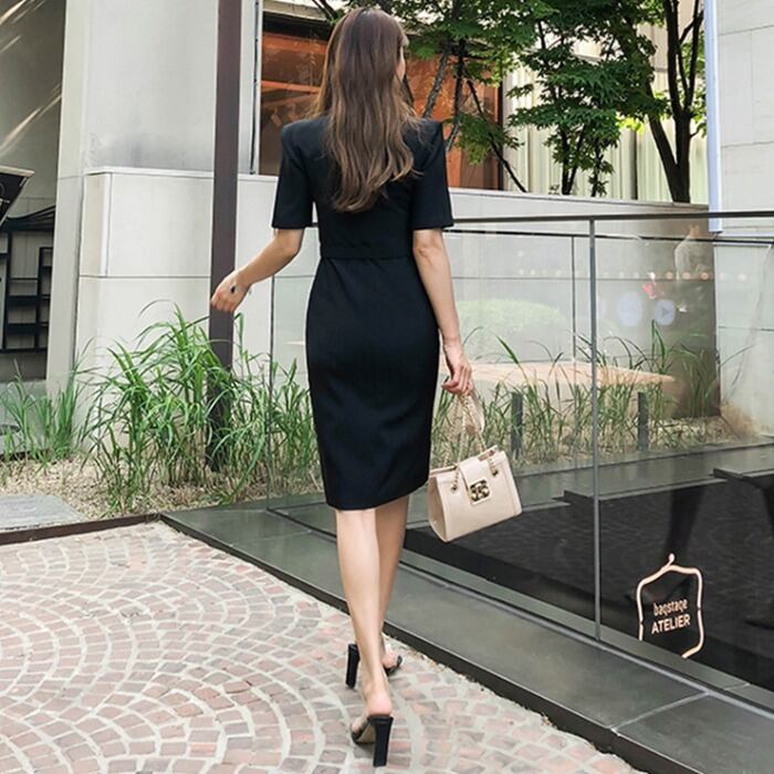 ワンピース 半袖 夏 きれいめ かわいい フォーマル シャツワンピース ひざ丈 レギュラー丈 五分袖 Vネック 深 Vネック 襟付き スリム タイト 細身 Iライン 切り替えデザイン ベルト ウエストマーク ハイウエスト 色展開 黒 ブラック S M L XL かわいい 大人可愛い きれいめ シンプル 大人 上品 おしゃれ 無地 スタイル モテ 体型カバー 美脚 脚長 個性的 クール モード系 エレガント 存在感 フォーマル ビジネス OL 通勤 女子会 イベント レディース 女性用 OL 20代