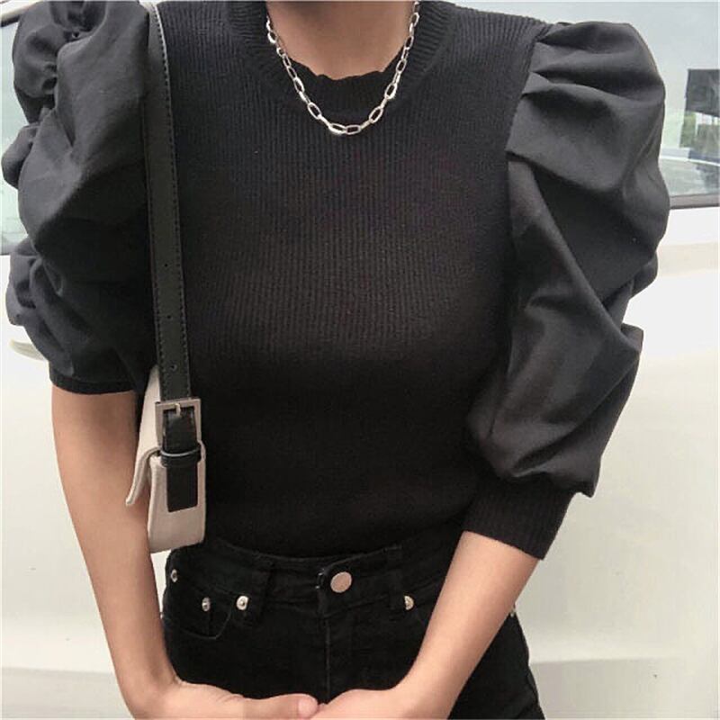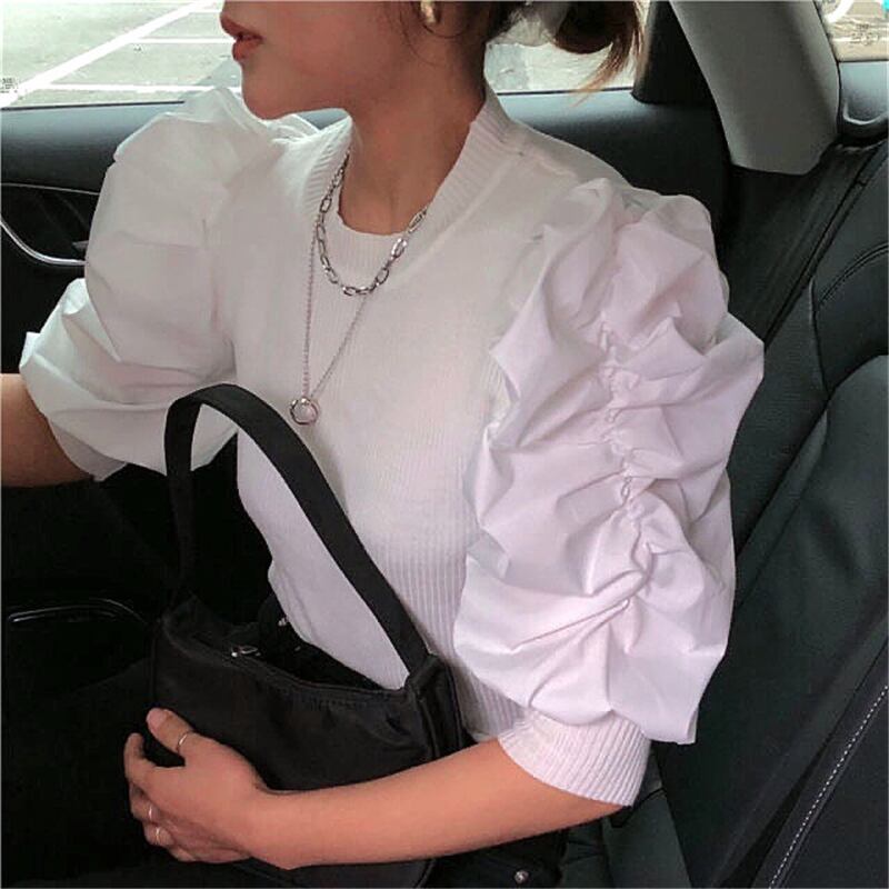 2色 トップス シャツ カットソー プルオーバー レディース 春夏 かわいい ゆったり 半袖 五分袖 ボリューム袖 パフスリーブ Uネック ラウンドネック 襟なし スリム タイト 細身 ドッキング プルオーバー 白 ホワイト 黒 ブラック 大人カラー モノトーン ワンサイズ ゆったり ジャスト かわいい 大人可愛い きれいめ シンプル カジュアル 大人 上品 おしゃれ ナチュラル かっこいい エキゾチック リラックス 無地 韓国 韓国系 オルチャン 韓国ファッション コーデ スタイル 着回し モテ
