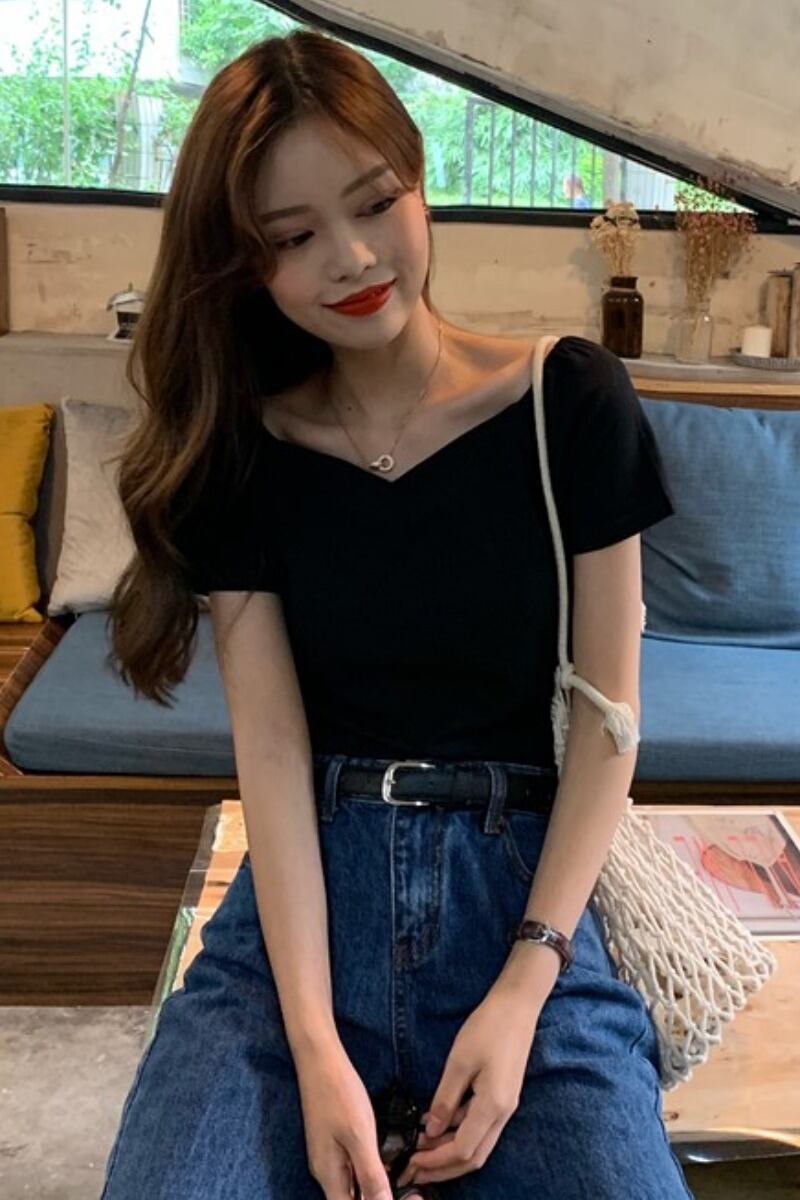 トップス Tシャツ シャツ プルオーバー レディース 春夏 きれいめ 半袖 萌袖 Vネック 襟なし スリム タイト 細身 プルオーバー 黒 ブラック 大人カラー モノトーン S M 小さいサイズ ジャスト かわいい 大人可愛い きれいめ シンプル カジュアル 大人 上品 おしゃれ ナチュラル かっこいい エキゾチック リラックス 無地 コーデ スタイル 着回し モテ 定番 普段使い こなれ感 ラフ メンズライク マニッシュ ボーイッシュ スポーティー ラブリー キュート ガーリー クール モード系
