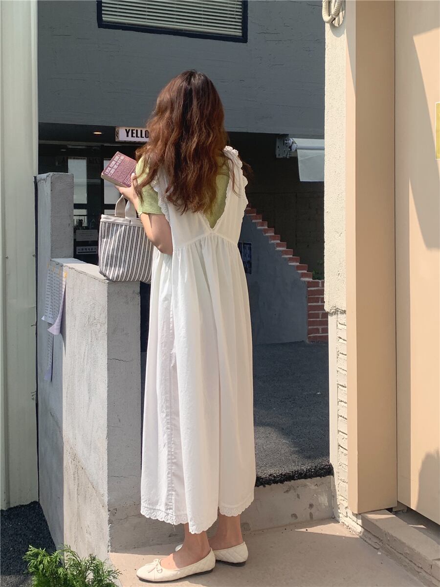 ワンピース ノースリーブ 春 夏 秋 かわいい ロング ワンピドレス 膝下 ロング ロング丈 Vネック ストレート 背中魅せ レース 透け感 白 春カラー ワンサイズ フリーサイズ ゆったり ゆる かわいい 大人可愛い きれいめ シンプル カジュアル おしゃれ ナチュラル レトロ リラックス 無地 着回し モテ 体型カバー 普段使い 重ね着 ラフ ラブリー キュート ガーリー 主役級 存在感 OL 学生 ママコーデ デート お出かけ 女子会 休日 イベント リゾート 旅行 海 プール 10代 20代