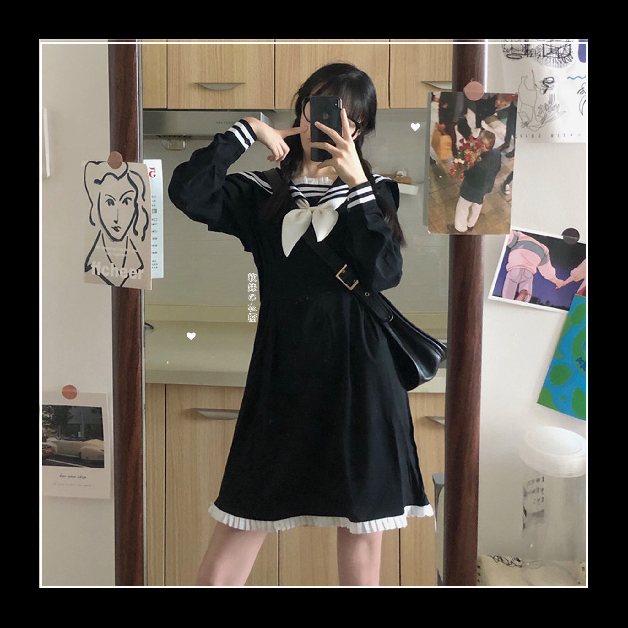 リボン ワンピース 長袖 春 秋 かわいい ワンピドレス ショート ショート丈 膝上 萌袖 襟付き セーラーカラー 細身 Aライン 切り替えデザイン フリル リボン ウエストマーク ハイウエスト 黒 ブラック バイカラー S M ジャスト かわいい シンプル カジュアル おしゃれ レトロ 無地 韓国 韓国系 オルチャン スタイル 楽ちん モテ 美脚 プレゼント ギフト インスタ映え ラブリー キュート ガーリー 個性的 存在感 OL 学生 お出かけ 休日 パーティー イベント ショッピング 二次会