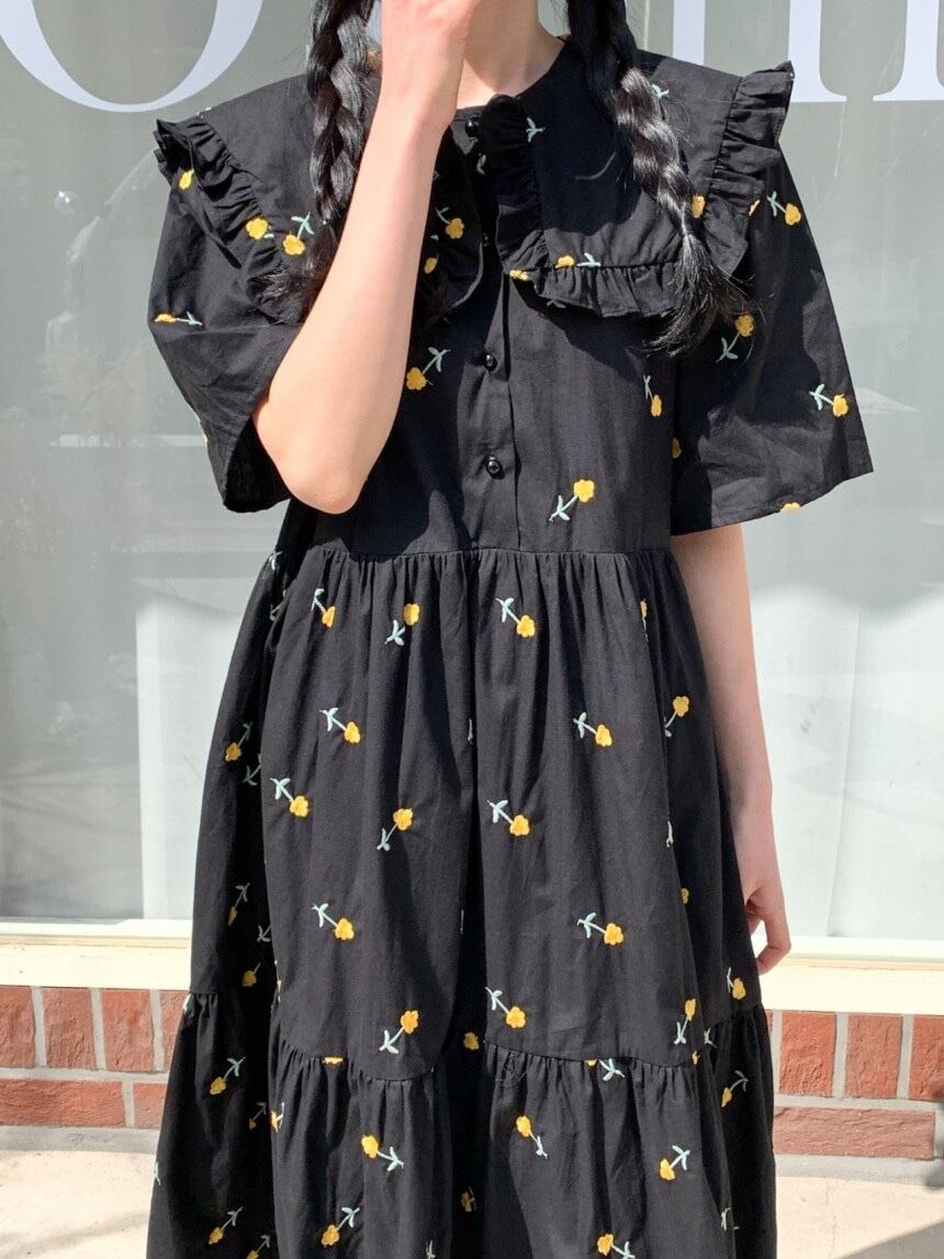 2色 レトロ風 ワンピース 半袖 春 夏 かわいい ロング ワンピドレス 膝下 ロング ロング丈 五分袖 ラウンドネック フレア シフォン 前開き 透け感 白 ホワイト 黒 ブラック ワンサイズ ゆったり ゆる かわいい シンプル おしゃれ ナチュラル レトロ リラックス 花柄 スタイル 楽ちん モテ 体型カバー 普段使い お揃い ラブリー キュート ガーリー 主役級 OL 学生 通学 ママコーデ お出かけ 女子会 休日 リゾート 旅行 海 プール ショッピング 10代 20代 30代