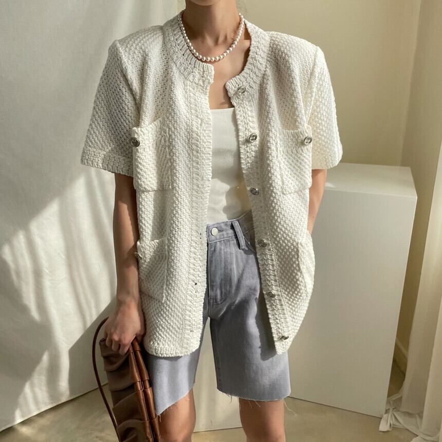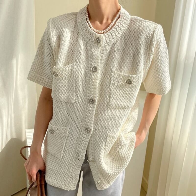 上品で優雅な半袖のニットカーディガン