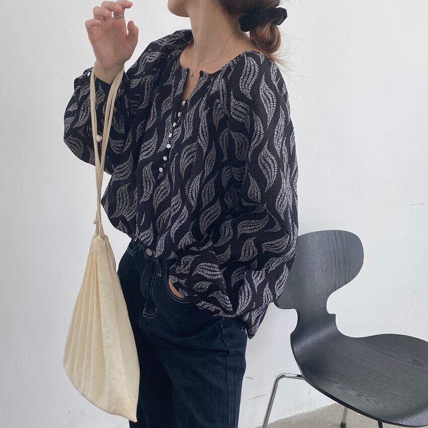 2色 レトロ風 トップス ブラウス レディース 春 きれいめ ゆったり 長袖 長袖 ボリューム袖 ラウンドネック 襟なし ルーズ 透け感 ホワイト ブラック 大人カラー 春カラー ワンサイズ フリーサイズ ゆったり 大人可愛い きれいめ シンプル 大人 上品 ナチュラル レトロ アジアン リラックス リーフ柄 ボタニカル 着回し モテ 体型カバー 普段使い 10代 20代 30代 こなれ感 ラフ ラブリー ガーリー エレガント 存在感 OL 通勤 学生 通学 お出かけ 女子会 休日 リゾート 旅行