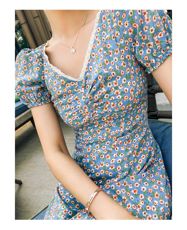 半袖胸元シャーリング花柄カシュクールワンピース!!