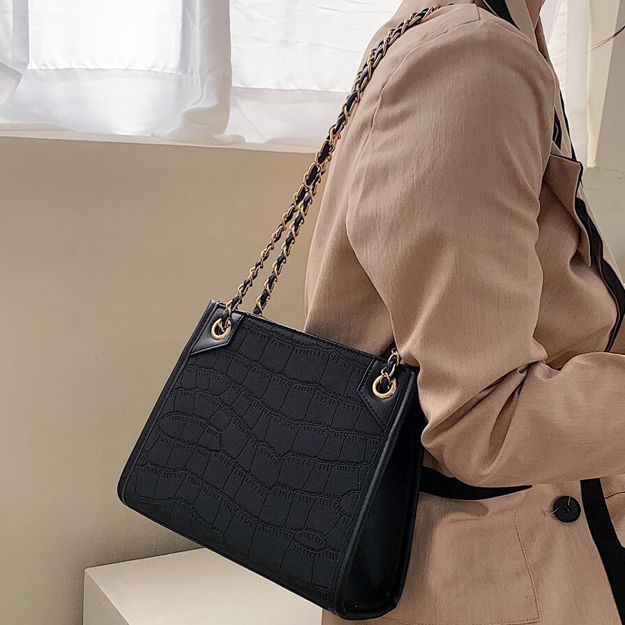 コンパクトなモード系ショルダーバッグ。