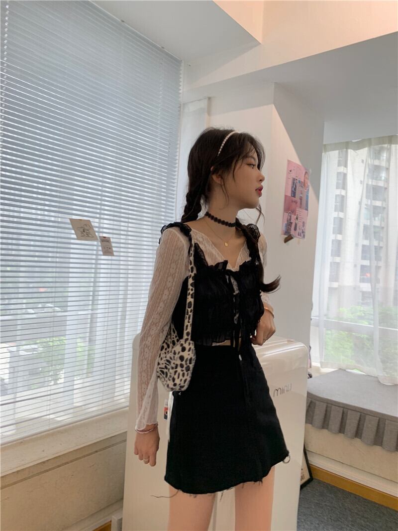 トップス プルオーバー キャミソール 2点セット レディース 春夏 かわいい 長袖 ショート ショート丈 長袖 スリム 細身 レース 2way 編み込み 透け感 ホワイト ブラック バイカラー モノトーン ワンサイズ フリーサイズ ジャスト かわいい 大人可愛い 大人 おしゃれ レトロ エキゾチック リラックス 無地 韓国 韓国系 オルチャン スタイル モテ インスタ映え 10代 20代 ラブリー キュート ガーリー ルーズ 個性的 セクシー 主役級 OL 学生 デート お出かけ 女子会 休日