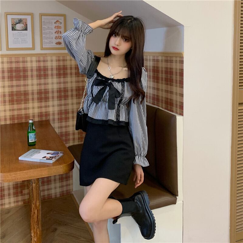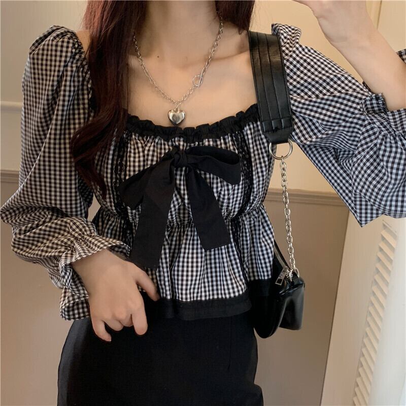チェック柄 トップス ブラウス レディース 春 秋 かわいい 長袖 ショート丈 長袖 パフスリーブ スクエアネック 切り替えデザイン リボン ブラック 大人カラー L XL 2XL 3XL 4XL 大きいサイズ かわいい 大人可愛い 大人 上品 おしゃれ レトロ チェック柄 ギンガムチェック 韓国 スタイル モテ 体型カバー 普段使い インスタ映え 10代 20代 ラブリー キュート ガーリー ルーズ 個性的 セクシー 主役級 OL 学生 デート お出かけ 女子会 休日 パーティー イベント リゾート