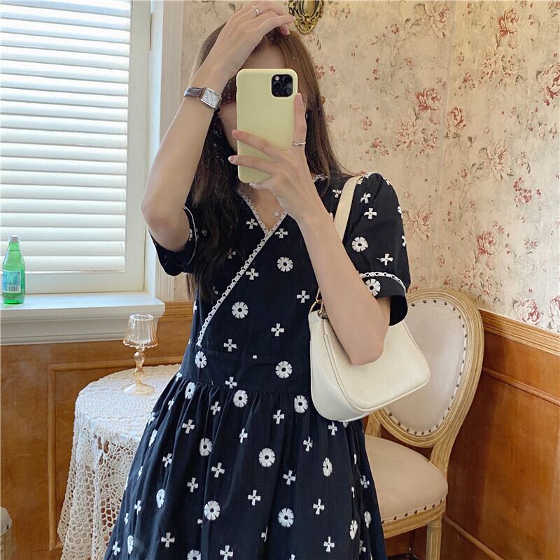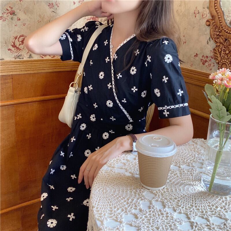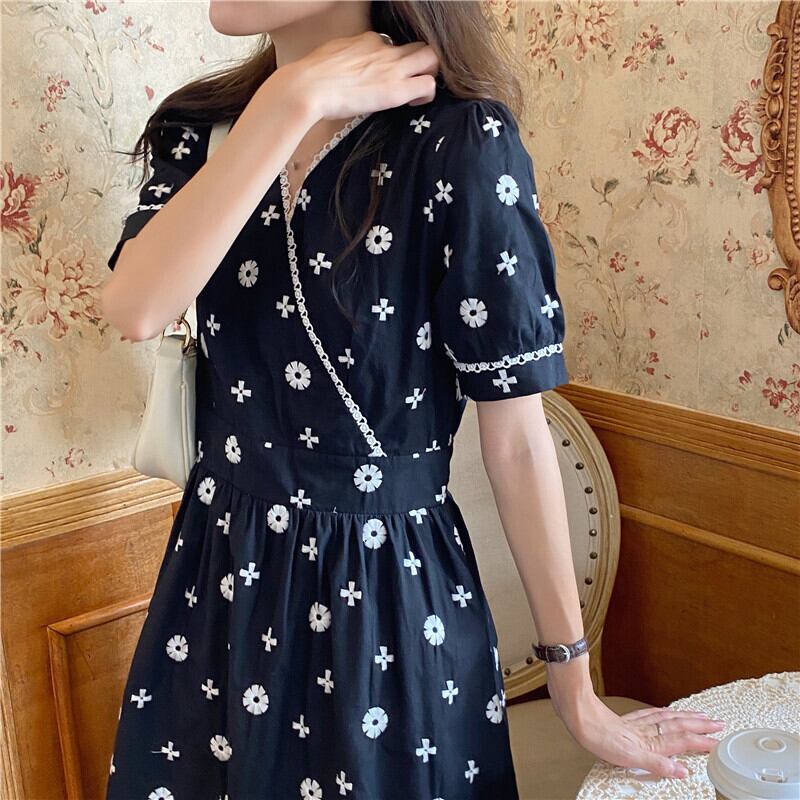 ワンピース 半袖 春夏 かわいい Aライン 膝丈 五分袖 Vネック 襟なし フレア Aライン ウエストマーク ハイウエスト 色展開 ブラック M L ゆったり かわいい 大人可愛い きれいめ シンプル カジュアル おしゃれ リラックス 小花柄 コーデ スタイル 楽ちん 体型カバー 脚長 ラブリー キュート ガーリー 主役級 存在感 OL 学生 通学 デート お出かけ 女子会 休日 イベント リゾート 旅行 レストラン ショッピング 映画館 誕生日 女性用 高校生 中学生 OL 10代 20代 30代
