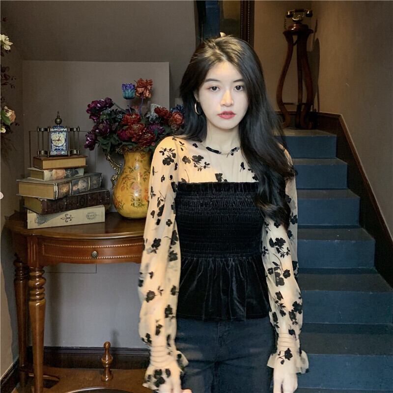 2色 トップス シャツ レディース 春 秋 きれいめ 長袖 長袖 襟なし 切り替えデザイン 細身 ドッキング レース ウエストマーク 透け感 シースルー ボトミング ブラック ブラウン 大人カラー 秋カラー ワンサイズ ジャスト サイズ 大人可愛い きれいめ 大人 上品 おしゃれ 花柄 韓国ファッション モテ インスタ映え 20代 30代 ラブリー セクシー エレガント 主役級 存在感 デート お出かけ 休日 ホテル レストラン ショッピング 誕生日 二次会 クリスマス バレンタイン 異素材MIX