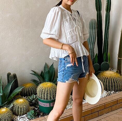 トップス シャツ ブラウス プルオーバー レディース 春 夏 カジュアル 半袖 五分袖 ボリューム袖 パフスリーブ Vネック 切り替えデザイン フレア 刺繍 フリル リボン 透け感 シャーリング ホワイト S M L かわいい 大人可愛い きれいめ シンプル 大人 上品 おしゃれ ナチュラル コーデ スタイル 楽ちん 着回し モテ 体型カバー 普段使い トレンド インスタ映え 10代 20代 30代 こなれ感 キュート ガーリー 通勤 通学 デート お出かけ 女子会 休日 イベント 旅行 ショッピング