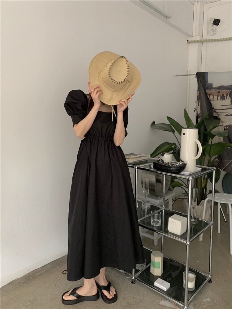 ワンピース 半袖 春夏 きれいめ ロング シャツワンピース ミモレ丈 ロング丈 五分袖 パフスリーブ スクエアネック 襟なし フレア 細身 Aライン 背中魅せ ウエストマーク ハイウエスト 色展開 ブラック M L XL 2XL 3XL 4XL ビッグサイズ ゆったり かわいい 大人可愛い シンプル カジュアル 大人 おしゃれ リラックス 無地 コーデ スタイル 楽ちん モテ 体型カバー 脚長 普段使い トレンド こなれ感 ラフ ラブリー キュート ガーリー エレガント 主役級 存在感 OL 学生