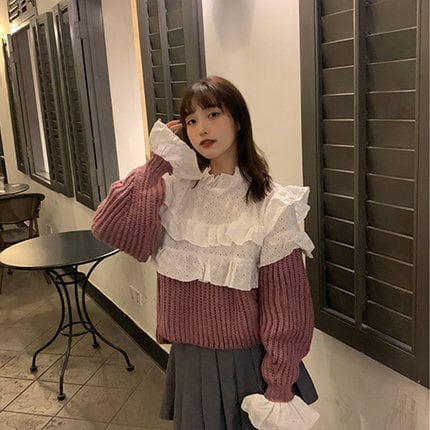 2色 トップス ニット セーター レディース 秋冬 かわいい 長袖 長袖 ボリューム袖 ハイネック スタンドカラー 切り替えデザイン ドッキング レース フリル ふわふわ グリーン ピンク くすみカラー 秋カラー S M L XL 2XL 大きいサイズ ゆったり かわいい カジュアル おしゃれ 無地 10代 20代 ラブリー キュート ガーリー 個性的 主役級 存在感 学生 通学 デート お出かけ 女子会 休日 旅行 ショッピング 映画館 誕生日 クリスマス バレンタイン 高校生 中学生 学生 ニット